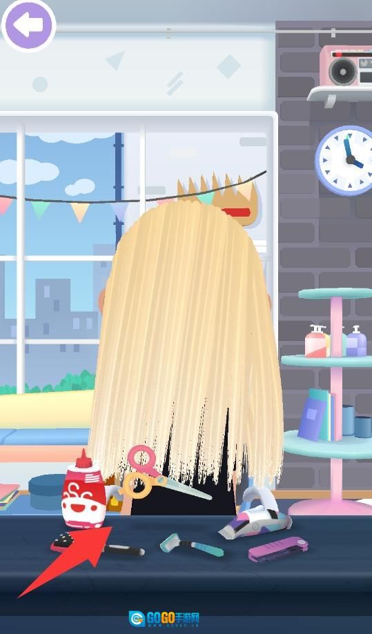 拖动底部工具栏中的美发工具,按照设计想法为顾客打造发型。