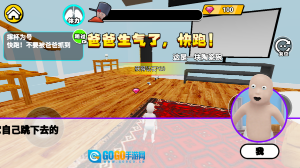 当屏幕上方弹出爸爸的生气表情图标时,意味着爸爸正朝这边走来!赶紧冲向离你最近的藏匿地点,点击“隐藏”按钮。只要能在爸爸进入房间之前藏好,就能顺利通过这一关!
