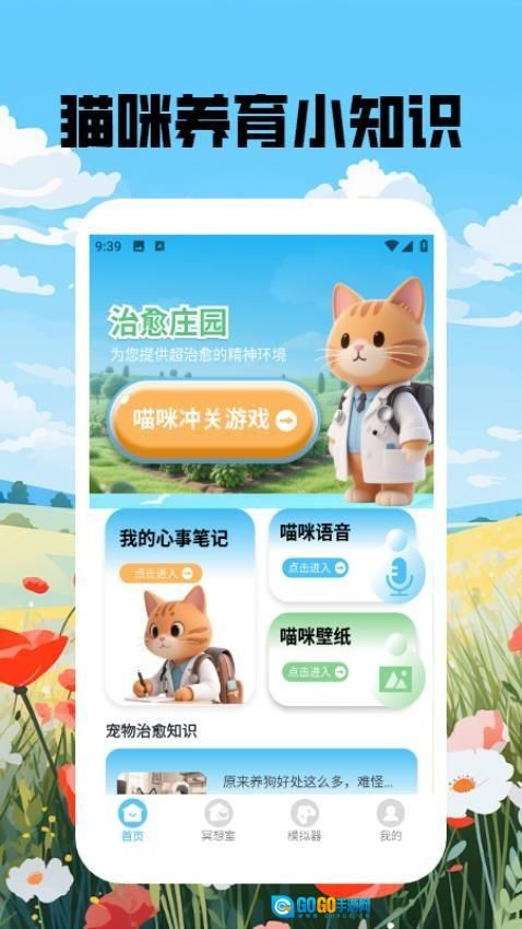 喵呜庄园治愈小院是个能玩又能放松的好地方,你可以玩猫咪闯关小游戏来打发时间,还能云养猫,体验喂猫撸猫的乐趣。要是觉得累了,里面的冥想功能能帮你静下心来。这里还有好多超可爱的猫咪壁纸,随便选一张当手机桌面,每天看着心情都会变好。