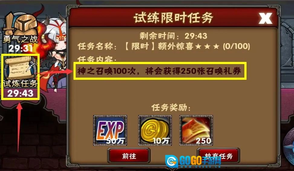 任务设有100次、1000次、2000次的召唤档位,每个档位均返还50%。