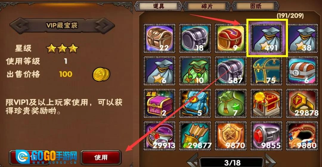 领取VIP后,前往仓库开启VIP藏宝袋(该藏宝袋可通过在商场购买星星宝箱并开启获得)
