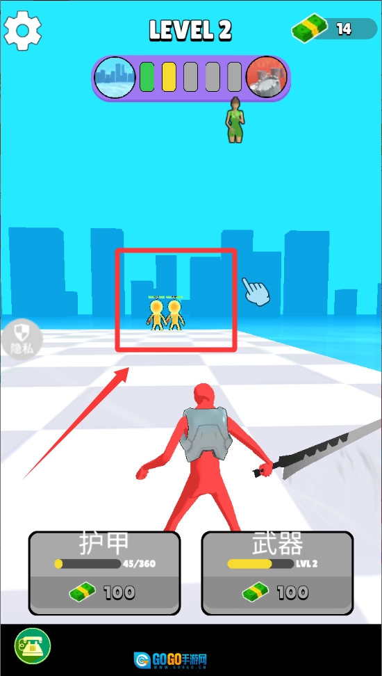 滑动一下屏幕就能攻击红色框框里的敌人。