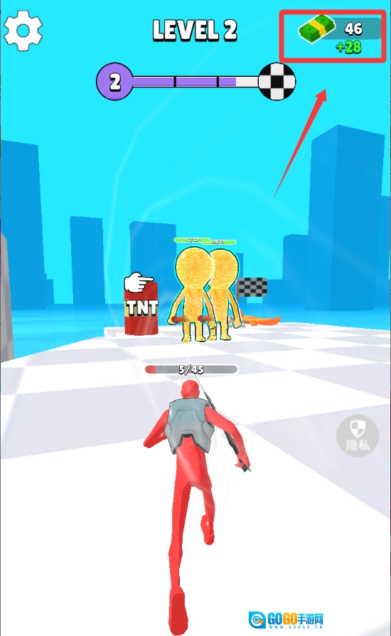 右上角显示的是你获得的钱币,每击败一个敌人就能得到相应的钱币。