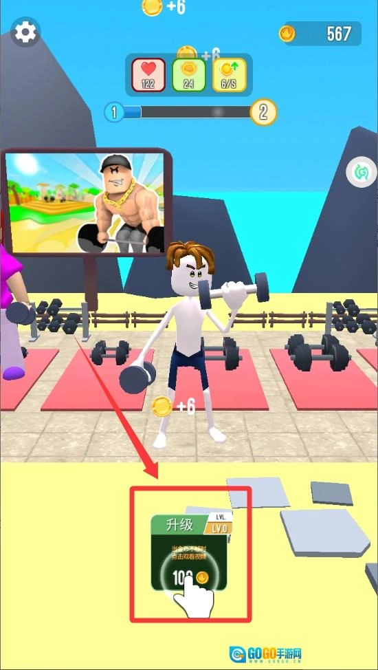在健身中心开启日常训练模式,进行专项特训。通过精准点击完成训练动作,积累经验值,从而提升各项身体指标。