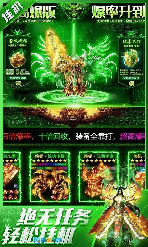 游戏里怪物掉落装备的概率非常高,哪怕是小怪都有机会爆出专属装备,玩家不用氪金,只要通过打怪就能轻松集齐神装,满足大家对传奇爆装的期待。
