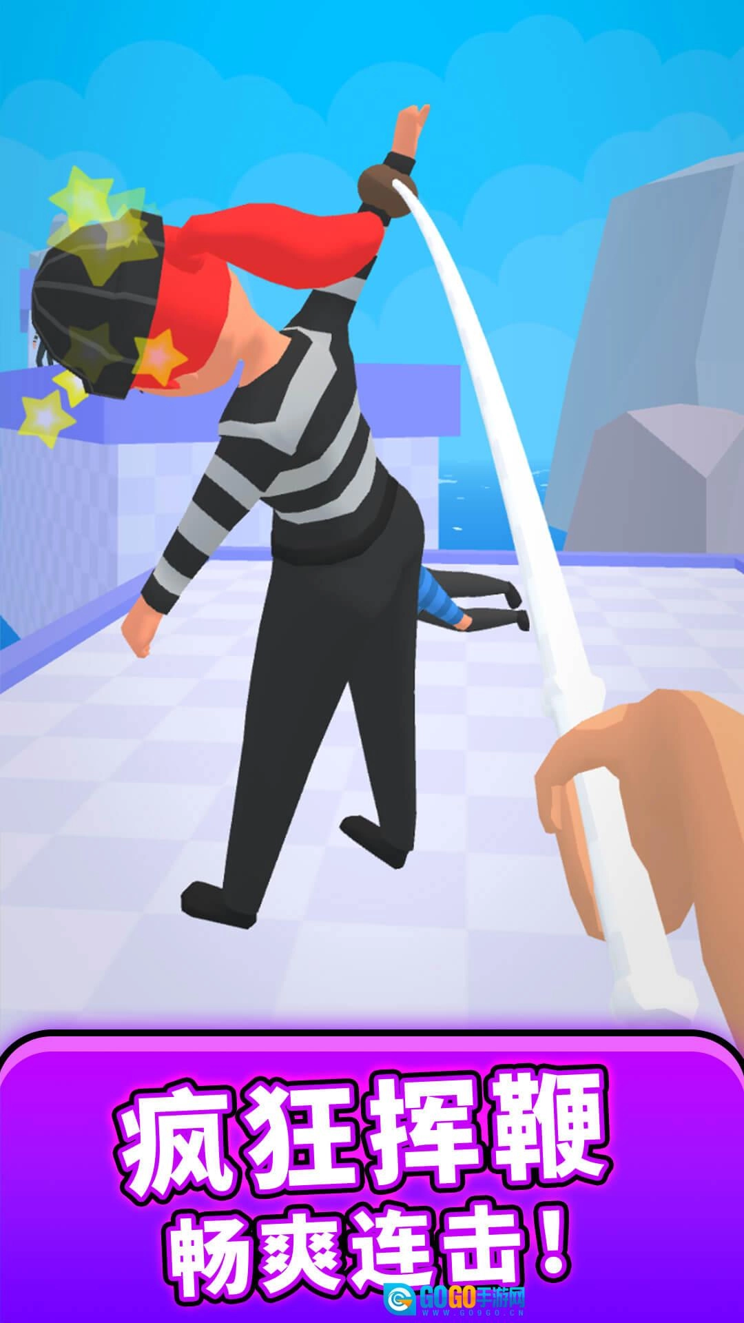 你可以用滑动屏幕或者按动按键的方式来操控鞭子,要精准地命中敌人。长按操作可以让鞭子蓄力并缠绕住目标,等松开手的时候就能把敌人甩出去了。