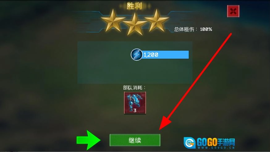 战斗获胜后,系统会弹出胜利界面,从中可以查看获得的各类资源。点击“继续”按钮,就能接着开展后续的建筑修建、部队安排以及战斗等相关操作。