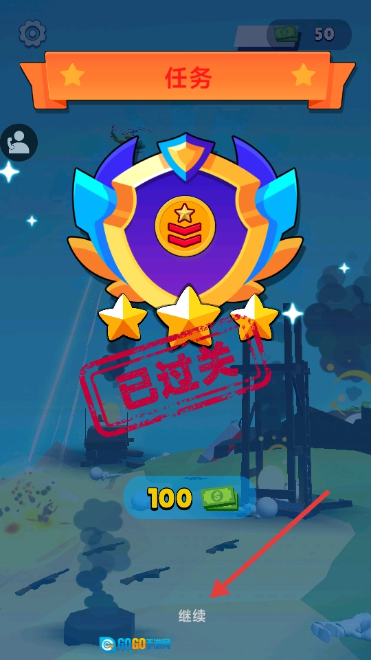 完成摧毁指定数量敌军单位的任务目标后,即可进入下一关卡。