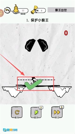 看着小猴站在绿色对勾标记的安全区域,确认保护任务已经圆满完成,接下来就可以准备开启下一关的操作了。