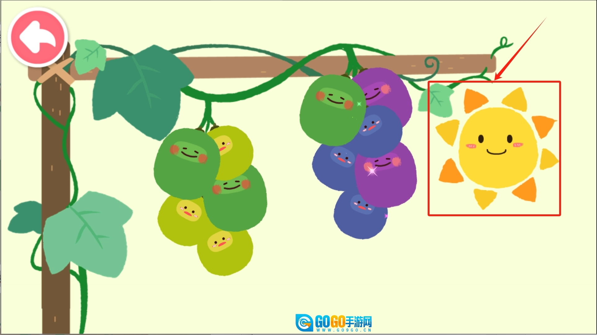现在的葡萄依旧是青绿色的,点击太阳来增加光照,葡萄就会渐渐成熟,变成紫色了。