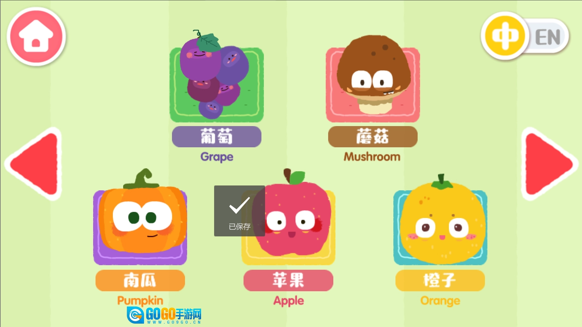 这里有多种水果蔬菜可供挑选,而且都是中英文双语对照的哦。