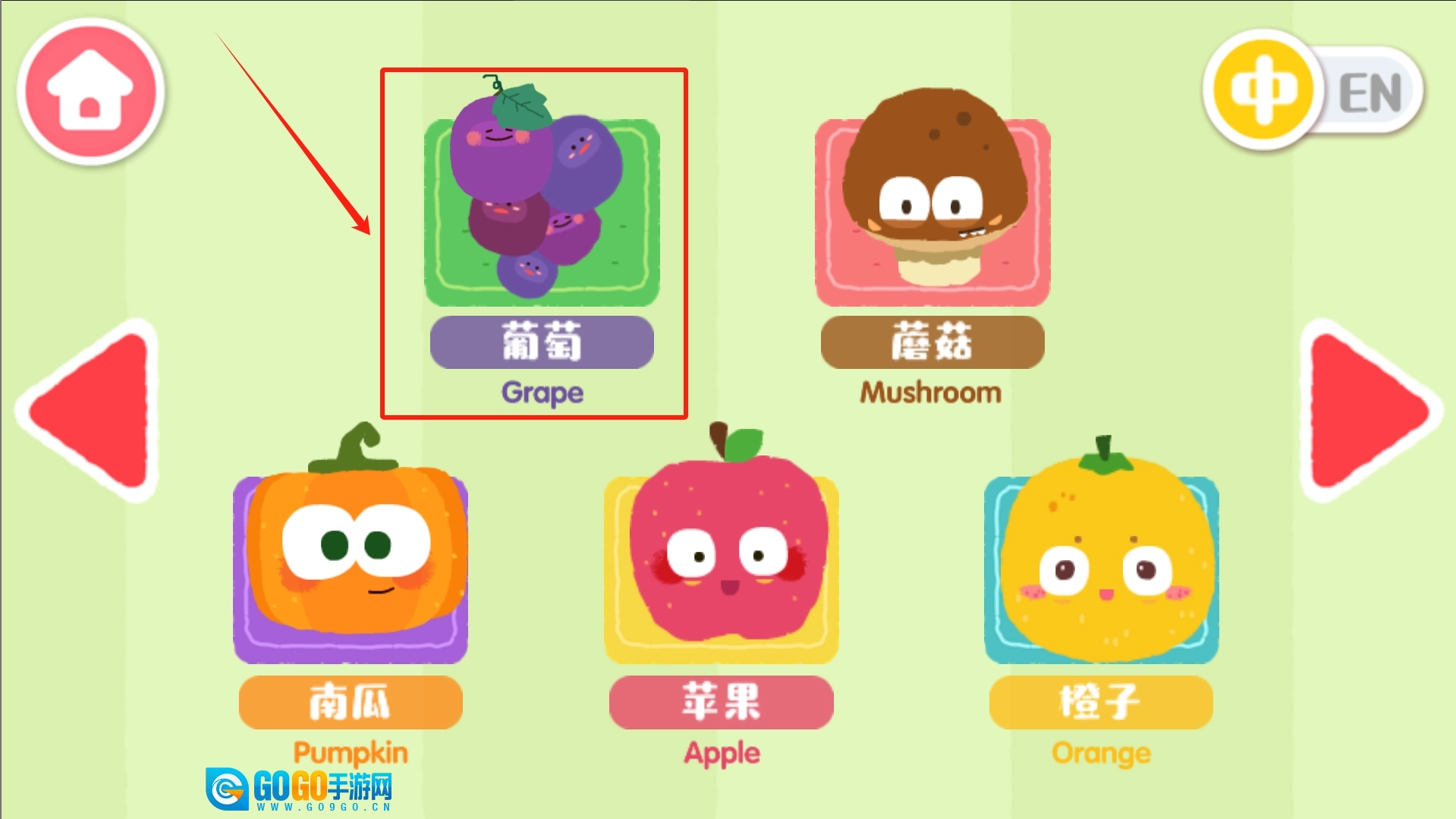 这里我们选择葡萄,游戏将模拟演示葡萄的生长过程。