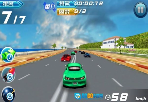 随机拾取的道具为玩家的狂飙之旅增添了不少惊喜,也让这段旅途更具冒险与奇幻感。游戏里有急速飞驰、烈火飞弹、双雷飞弹、暗影地雷等多种道具,虽然可以用游戏积分直接购买,但免费道具也会在途中随时出现!玩家在游戏中踩到蓝色箭头就能瞬间加速,另外,蓝色箭头加小圆圈的组合可千万别错过,这可是随机拾取道具的好机会,各种随机道具应有尽有,能让你花样百出,轻松超越对手,领先全场。