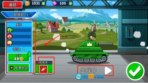 在地图里收集金币与强化组件这类资源,它们可以用来升级现有坦克或是购置新的坦克。