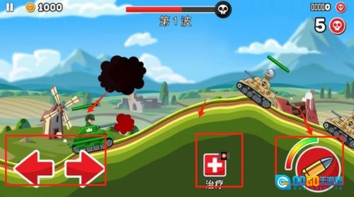 玩家需要熟悉基础的操控方式:通过点击屏幕左右两侧的按钮,能够控制坦克完成前进、后退以及转向的动作;另外,点击射击按钮即可对目标发起攻击。