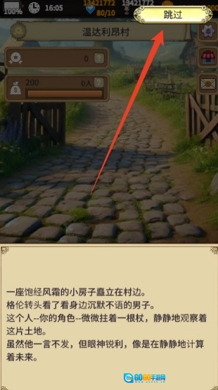 3、前面有一段剧情介绍,我们点击右上角的【跳过】按钮就能直接略过。