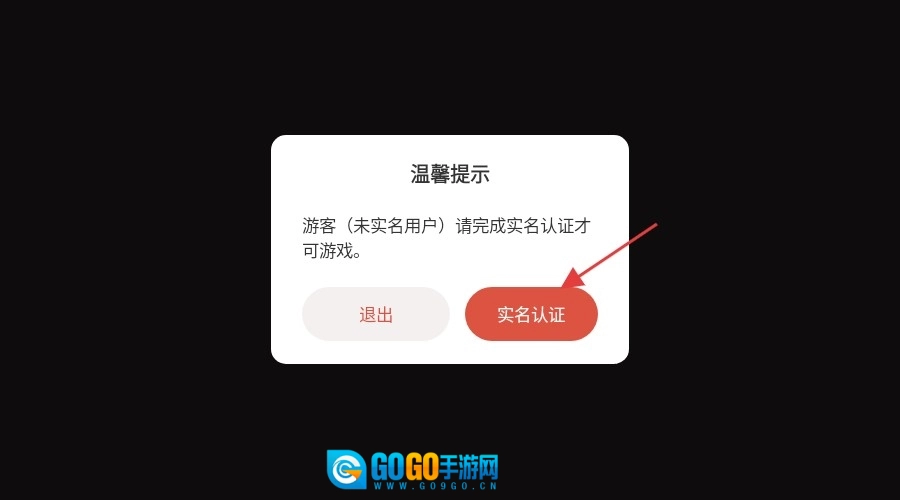 当看到【温馨提示】弹窗时,若希望继续进行游戏,点击【实名认证】按钮即可进入认证流程。