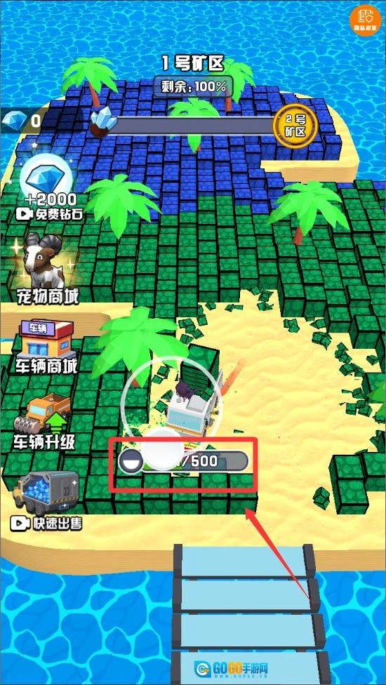 屏幕右上角会实时展示当前已收集的方块数量,一旦进度条显示达到500/500的状态,就会通过闪烁的方式提示“仓库已满”,此时将无法再继续收集新的方块。