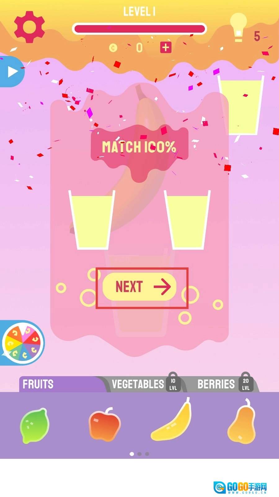 我们即将开启一场调酒之旅,点击屏幕就能进入第一关,准备好使用水果来调制美味的饮品吧。