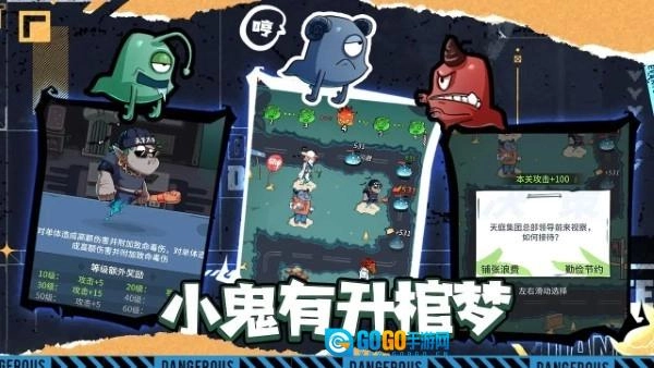 这款游戏以小鬼作为主角,采用了模拟地府中升官发财的创意玩法。玩家扮演地府公务员的角色,既要布置任务抵御敌人的入侵,又要培养自身势力以壮大实力。游戏中可以自由挑选防御塔和武器,挑战各式各样的关卡,在策略性的布局过程中感受别具一格的乐趣。