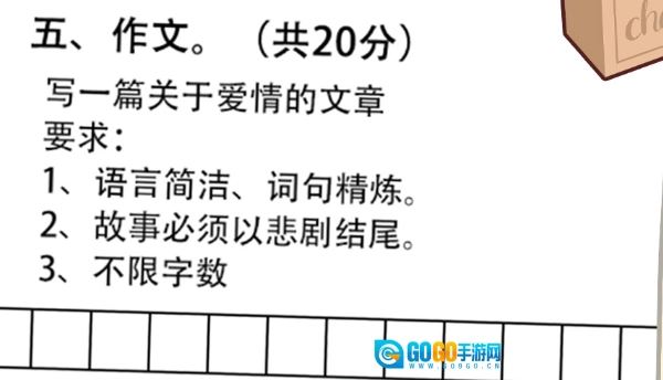 作文需语言简洁、词句精炼,故事须以悲剧收尾,字数不限。