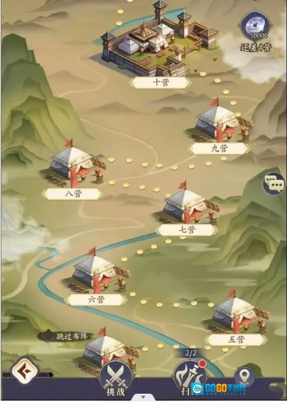 在决战连营的战场之上,处处都分布着敌军的营地。城主必须派遣麾下的武将,逐个攻破这些敌军营地,而营地中的敌人实力,也会随着挑战进程的推进持续增强。