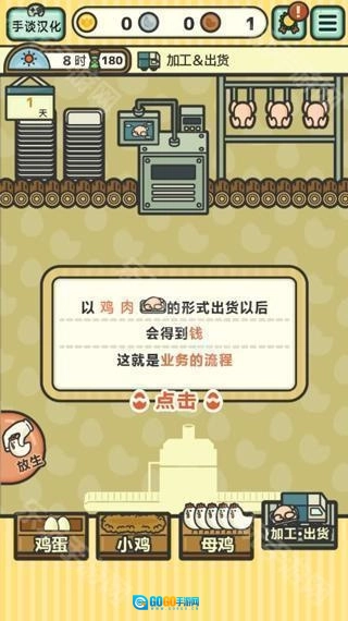 白天为生产时段,时长三分钟。在此期间,玩家可点击加速机器运行,以此提升小鸡的成长进度与售卖效率,从而获取更多收益。