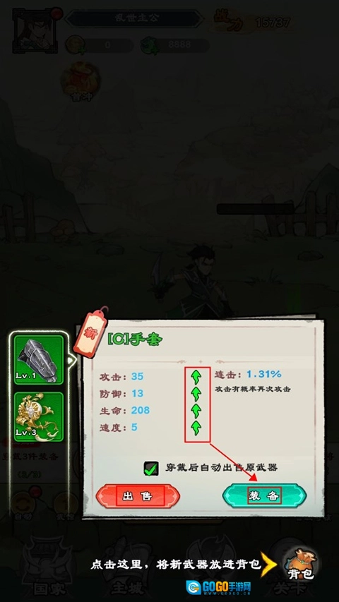 出售装备能获取金币奖励,这些金币可用于提升武馆等级,进而提高高级装备的刷出概率。