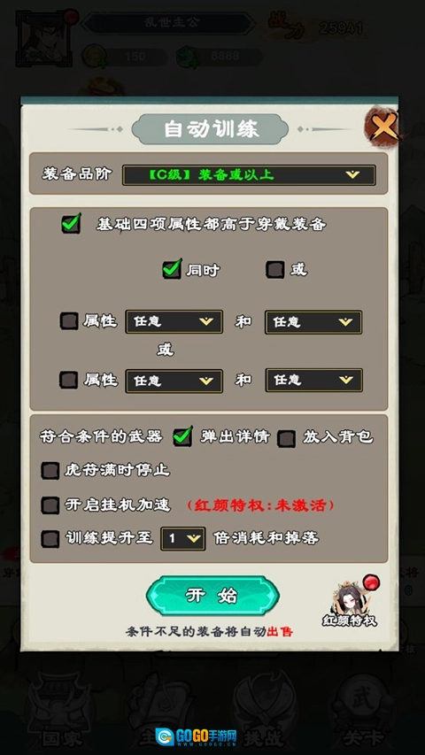 玩家可点击左下角的交互箭头开启自动挂机训练,此过程无需手动操作,只需切换高级装备即可。