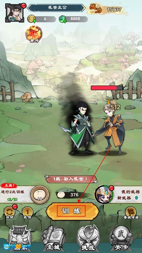 选好职业就能正式开启游戏了,玩家点击下方的训练按钮,角色便会自动攻击敌人。