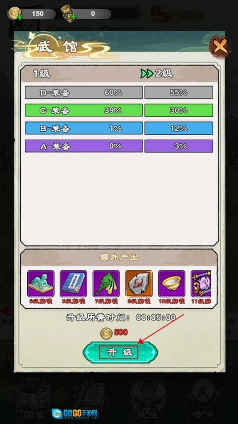 升级是需要时间的,玩家可以通过参与关卡挑战来获取加速沙漏。