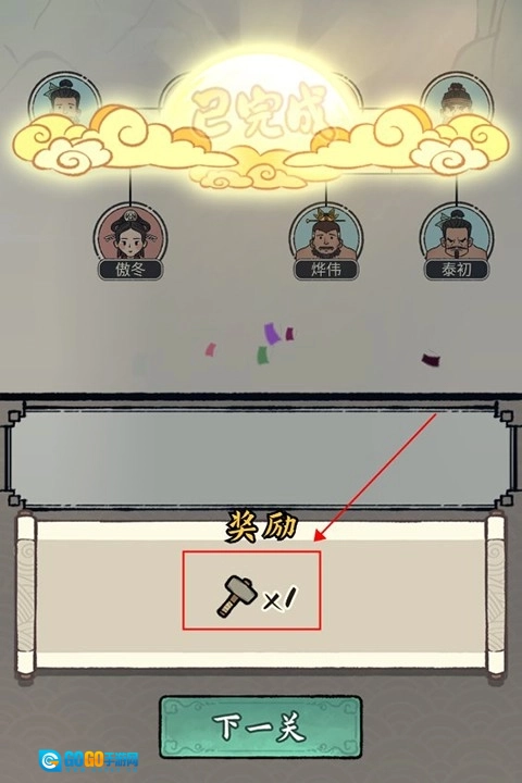 所有圆框正确填入就可以通关并获得锤子奖励啦。