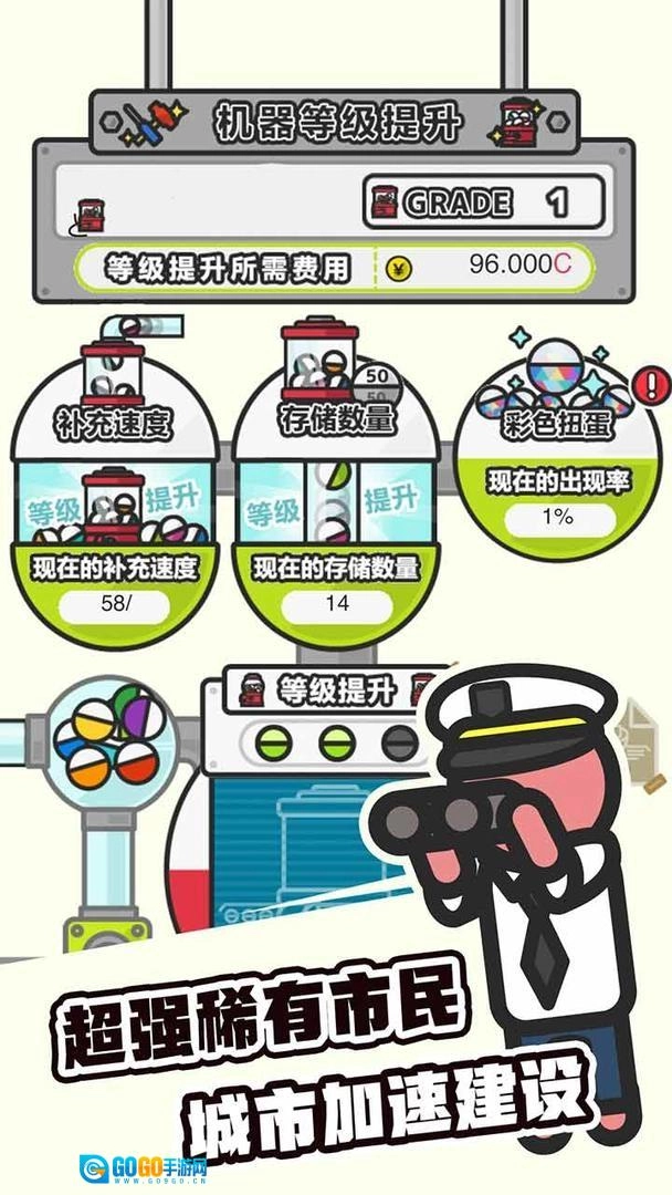 玩家转动扭蛋机有机会随机获取市民,这些市民可用于城市的扩展与建设。