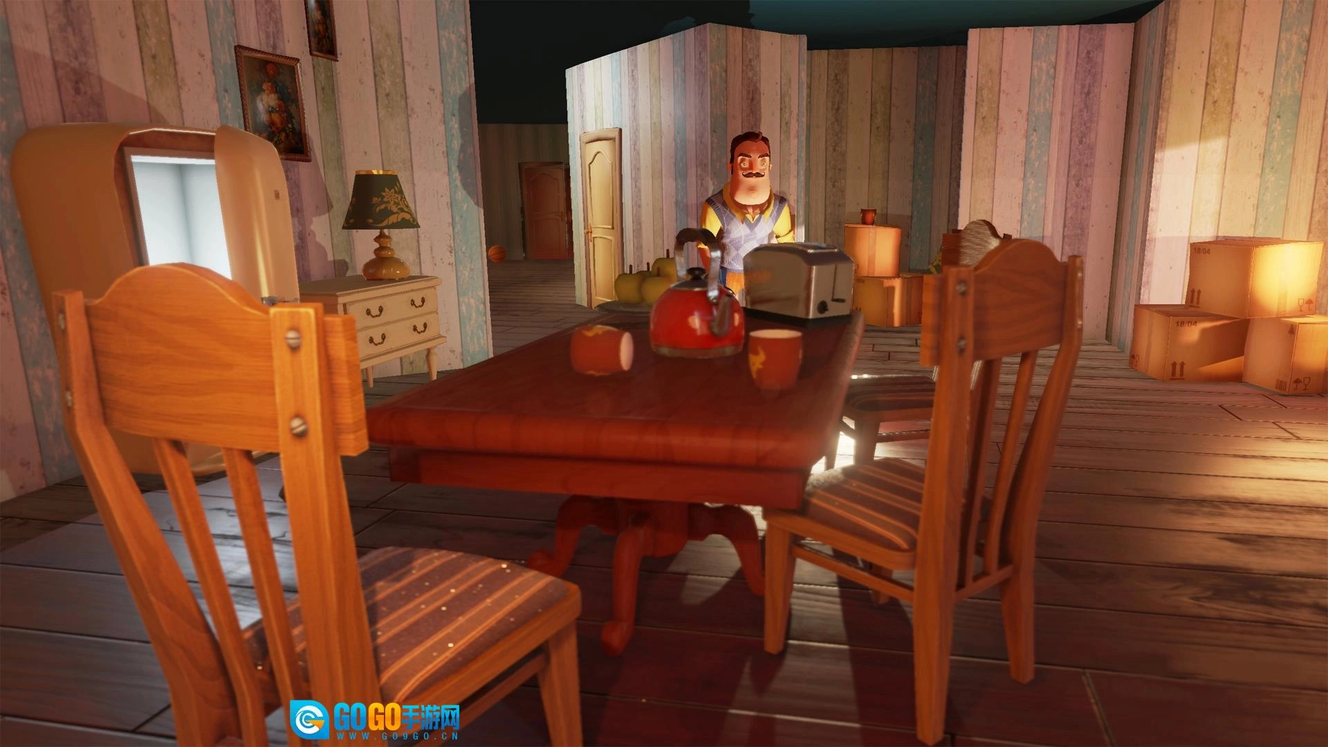 《你好邻居1》是一款十分值得体验的冒险解谜游戏。游戏采用第一人称视角,能让玩家仿佛置身其中,大大增强了游戏的刺激感。邻居大叔叔因家庭变故性情变得古怪异常,时常做出一些怪异举动。你需要潜入他家,探寻这些奇异行为背后的秘密,不过一定要小心,别被他发现了!