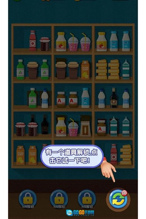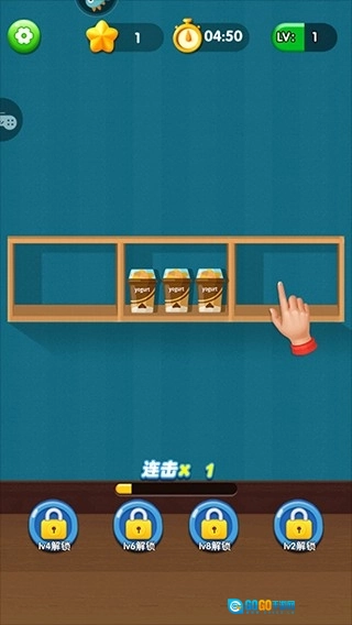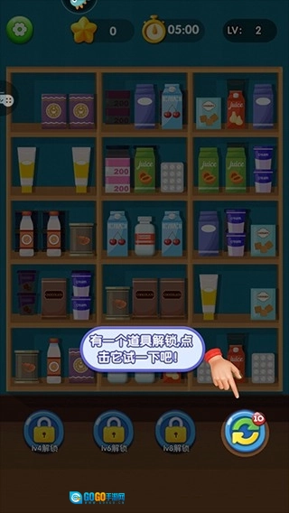 每三个相同的道具能完成一次消除,得持续进行消除操作才能清空一个货柜。