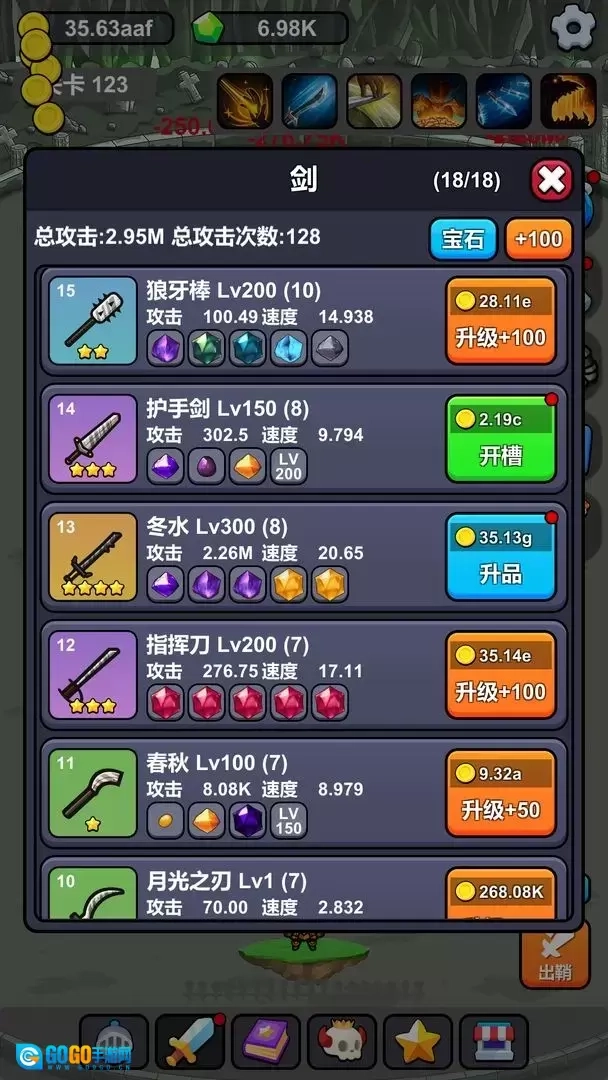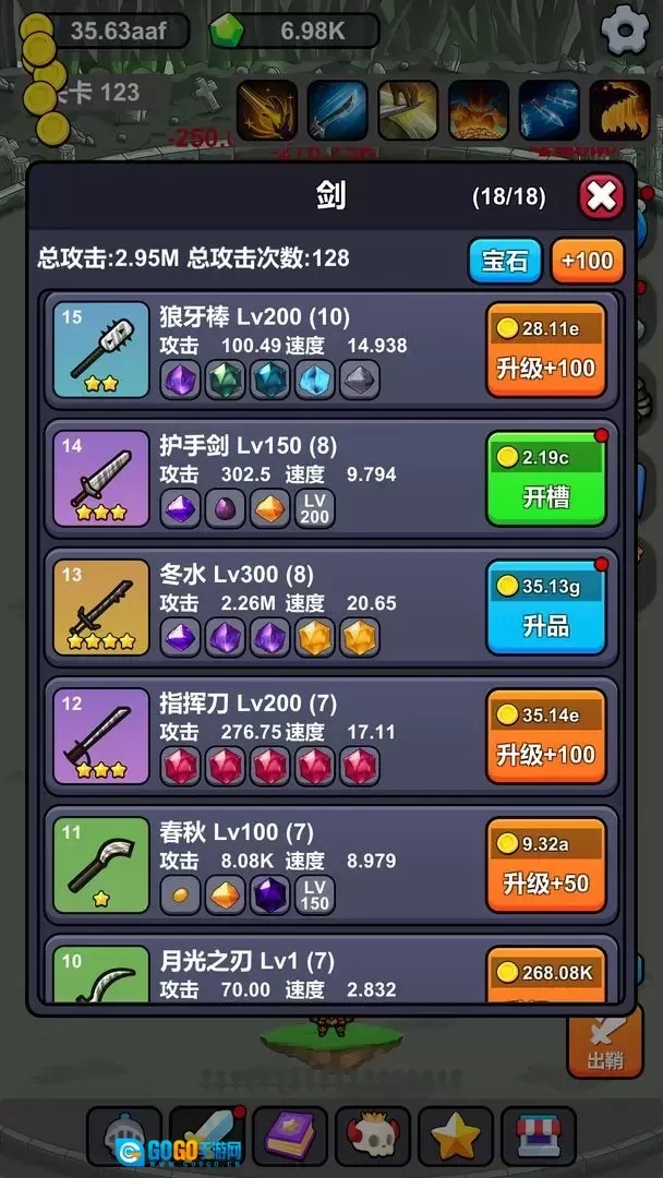 宝石镶嵌:飞剑升级后能够开启凹槽用于镶嵌宝石,各类宝石可赋予不同的属性增益,像攻击力、防御力之类的。