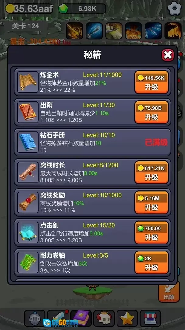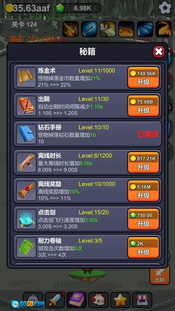 通过消耗金币与宝石解锁各类秘籍,助力角色提升战力。每日挑战与爬塔玩法带来多样冒险乐趣,还能赢取更多资源和宝石奖励。