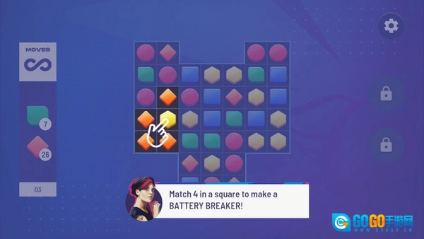 游戏里可以定制汽车,不过定制时得先收集对应的材料。游戏核心玩法是消除方块获取材料,而且每一关都会明确指定需要消除的材料方块类型。