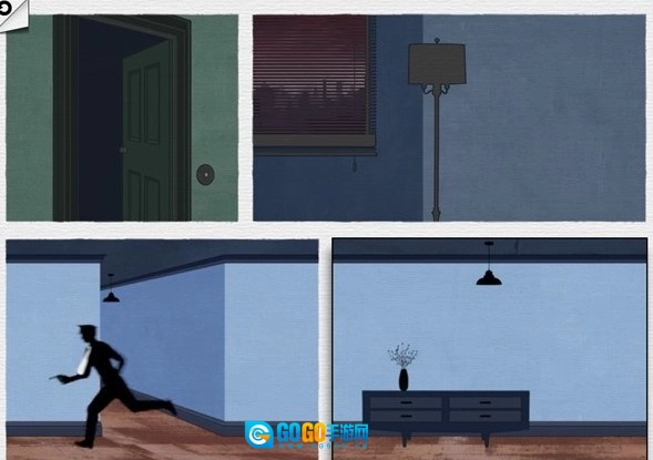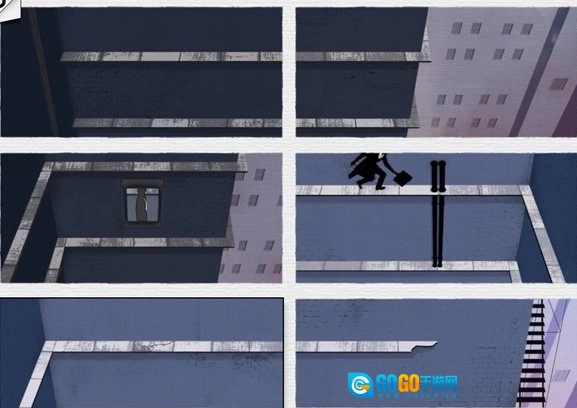 第四场景:对图片进行调换操作,让主人公通过跳窗的方式逃离,以此躲避警察的射击。