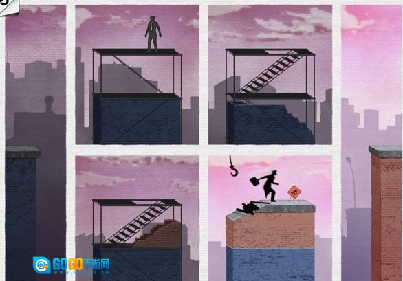 第六场景:调整图片的排列顺序,防止主人公因踩到碎砖块而摔下楼。