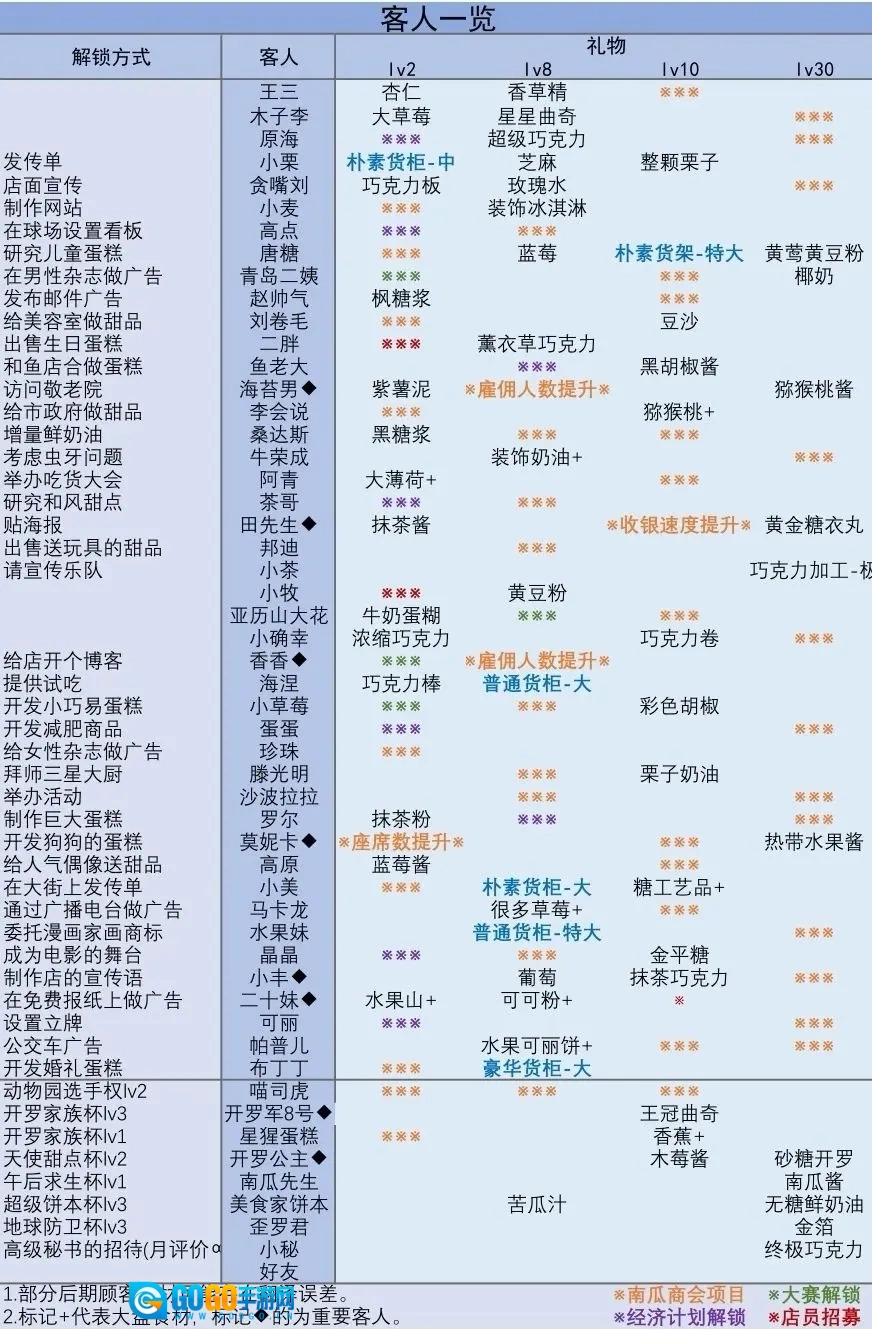 游戏内每个客人都有自己喜欢的口味以下为大家总结: