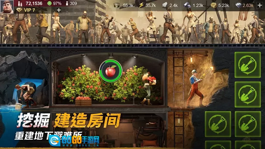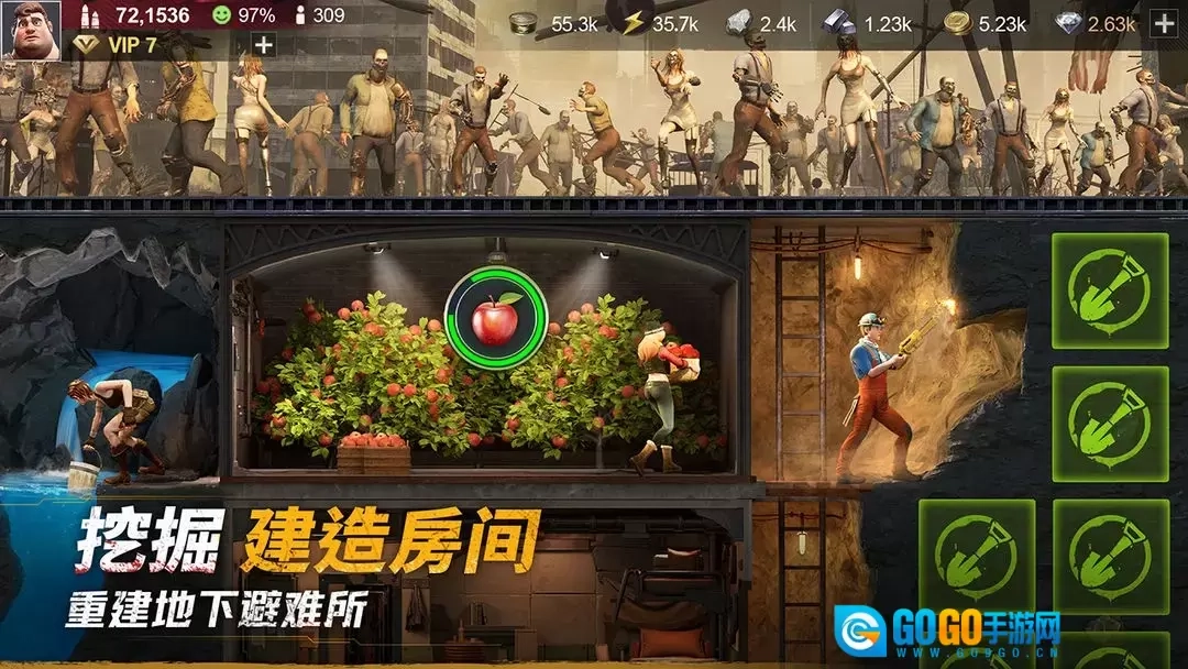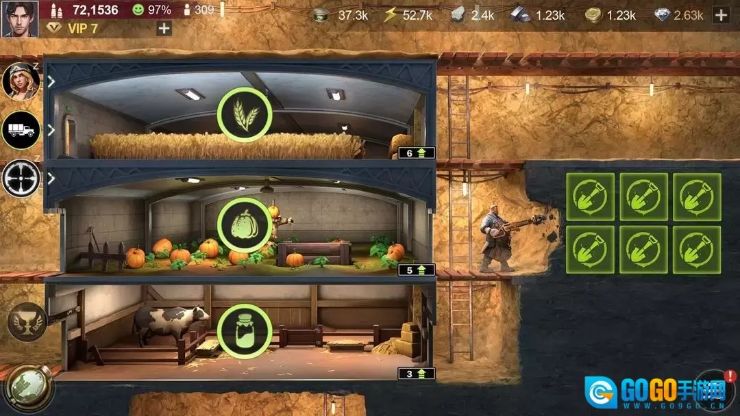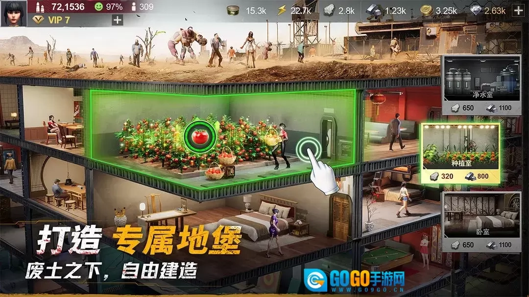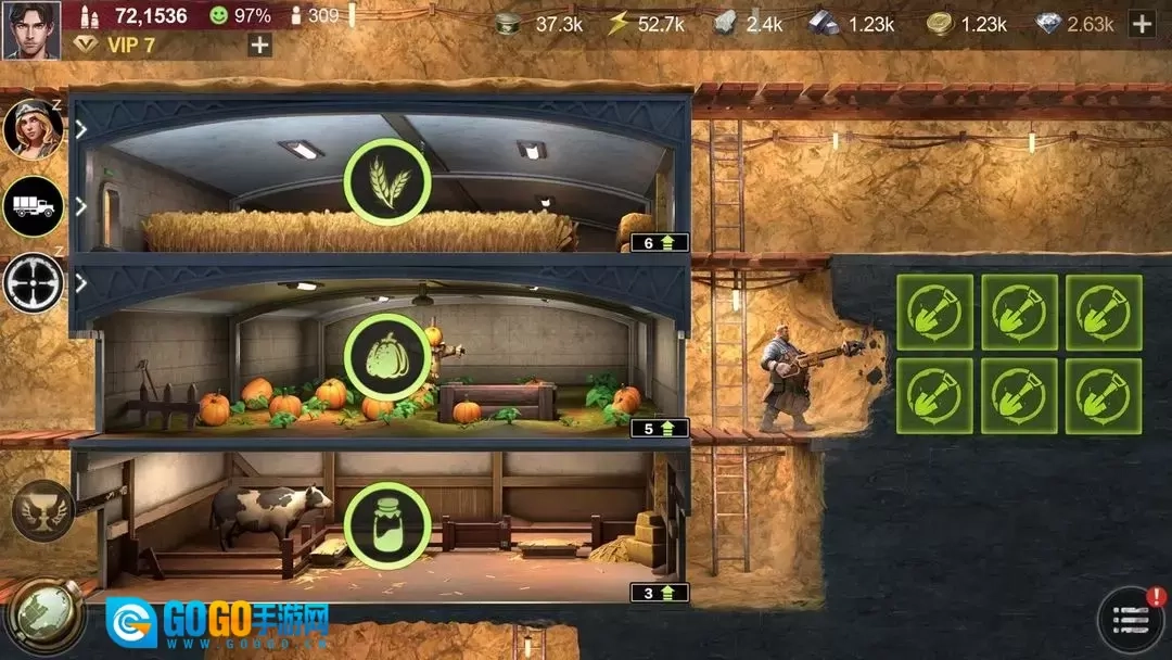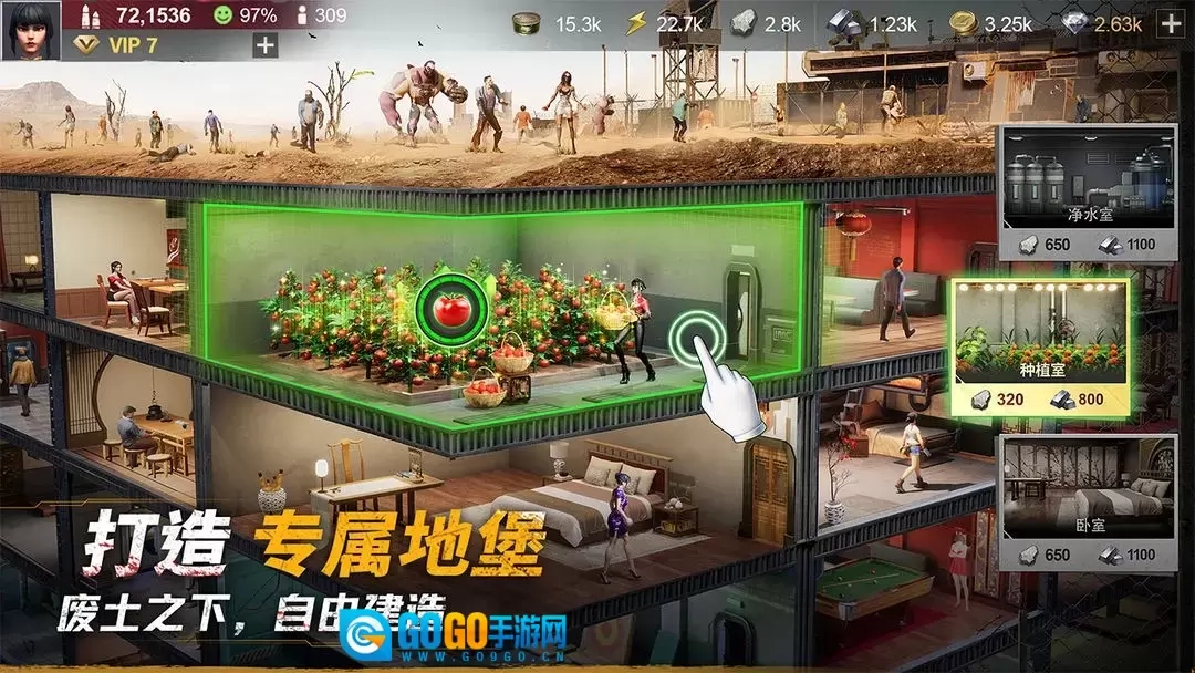 打造地下堡垒:玩家的首要任务是构建稳固的地下堡垒,以此作为抵御怪物侵袭的安全庇护所。玩家需要收集生存所需的各类资源,持续升级矿场、农场、实验室、练兵营等科技建筑,从而增强堡垒的防御与攻击实力。