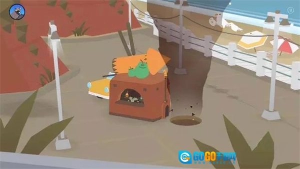 玩家操控的地洞可以吞掉比自身小的东西,随着吞入的物体不断增加,地洞会慢慢变大,进而可以吞噬更大的物体。