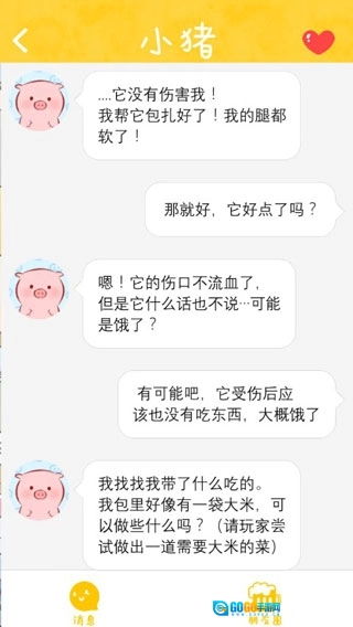 这是一个能和小猪互动的平台,同时也是小猪的社交圈,用户可以把完成的剧情记录在朋友圈里。