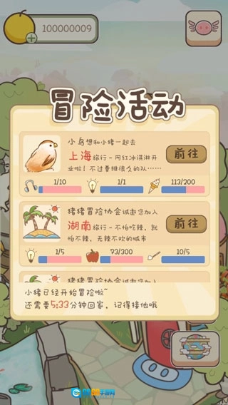 旅行回来的小猪,你既可以安排它去工作,也能让它参与下一次冒险。每次冒险都有时间限制,而且还能为你提升各种属性。