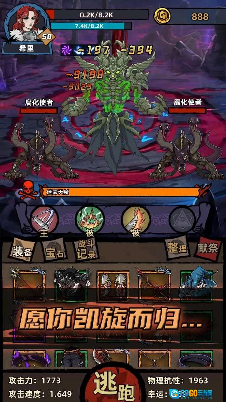探索地牢寻找强力装备,战胜boss后能够获得更强力的装备。