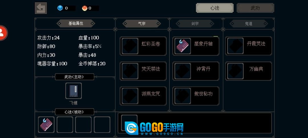 点击右上角的按钮来切换心法和武功,接着点击你想要的那个心法或武功,选择装配就可以了。