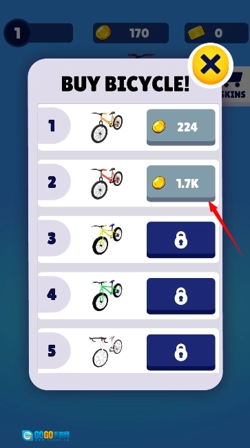 玩家可以通过消耗金币来购买已经开放购买的自行车