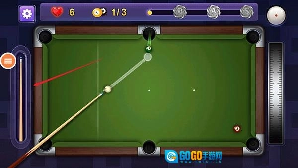 3、您也可以先准备好强身糕,接着发射白球,要确保把其他球打进洞里。
