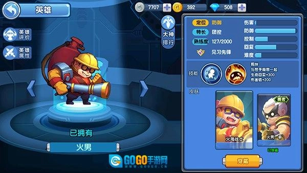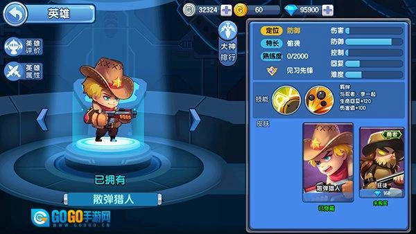点击英雄即可进入英雄展示面板,在该面板中能够查看英雄的属性特征、技能效果等相关内容。